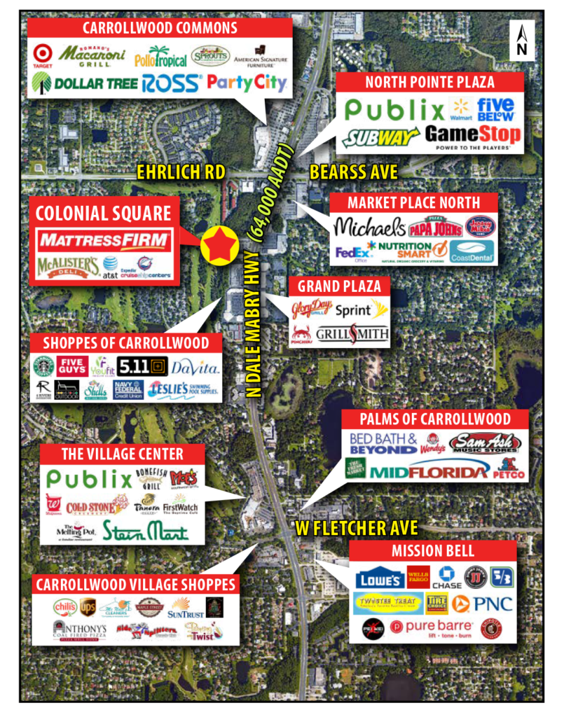 • Strategically located in a retail intensive area alongside high traffic N Dale Mabry Hwy (64,000 AADT)